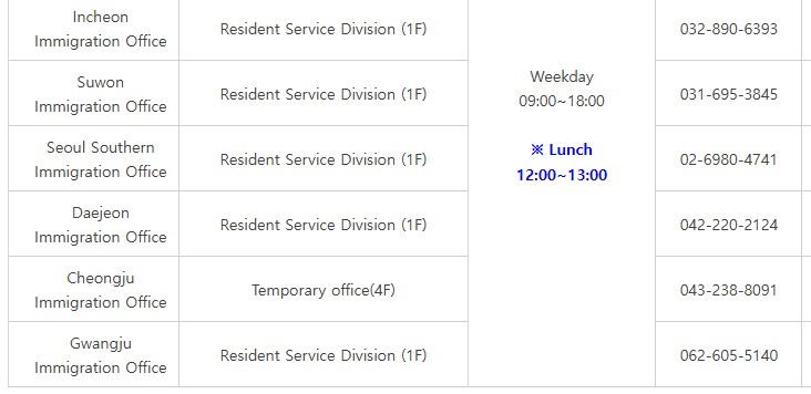 韓文地址:인천광역시 중구 서해대로 393, 인천출입국·외국인청 1층 10번창구